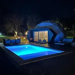 Pátio e varanda estão equipados com controle de temperatura para maior conforto dos hóspedes. As comodidades dos quartos incluem TV via satélite, bem como lareira de pedra. O quarto inclui bidé, casa de banho separada e chuveiro, secador de cabelo e lençóis de banho.
